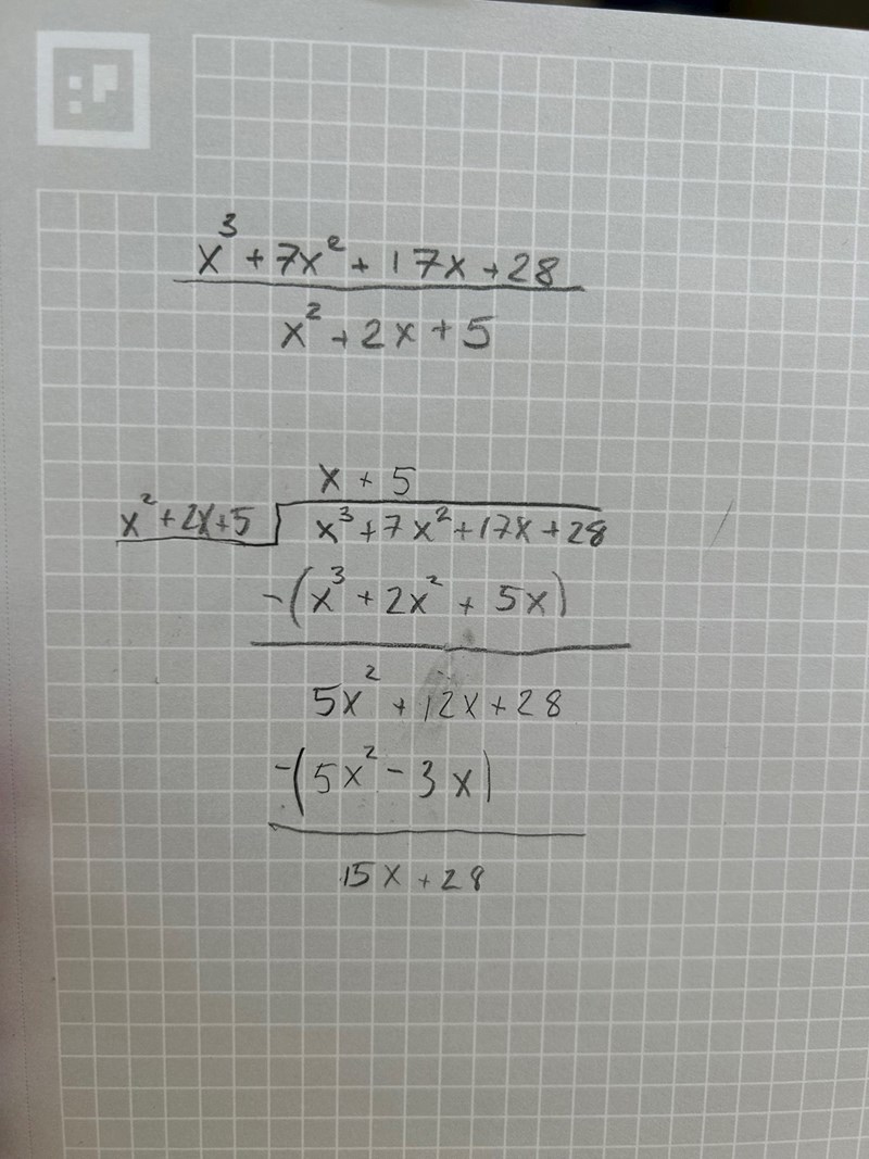 Jag försöker läsa en polynomdivision men vet ej vart det blir fel/..