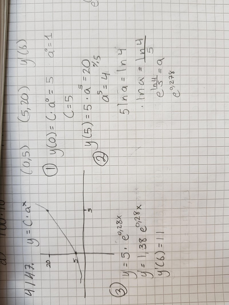 AndersW skrev :Det är i sista steget när du beräknar y'(6) fram till dess är det helt korrekt. Jag får inte 1,38 e^(0,28*6) till 11 utan 7,4.