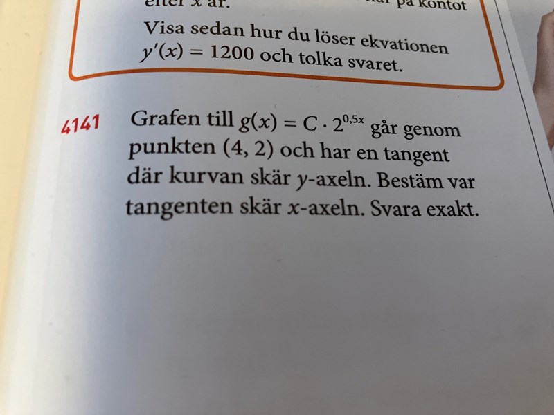 Jag håller med dig i första delen men inte i andra, då man behöver hitta derivatan då x=0 (där kurvan skär y-axeln).