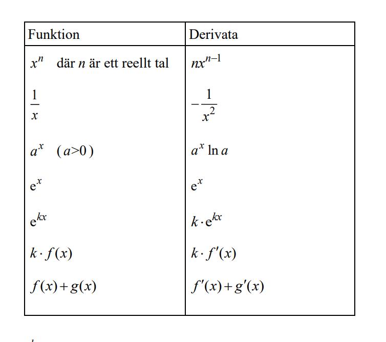Inre derivata kanske inte är känt i matte 3, men det här formelbladet från nationella proven matte 3