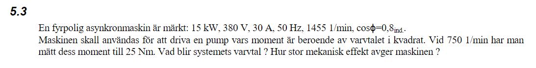 Har fastnat i ett övningshäfte om asynkronmaskiner på nedanstående uppgift. Vet som inte riktigt vart man ska börja eller ta sig an uppgiften om någon skulle kunna ge mig lite vägledning bara så kanske jag tar mig vidare.