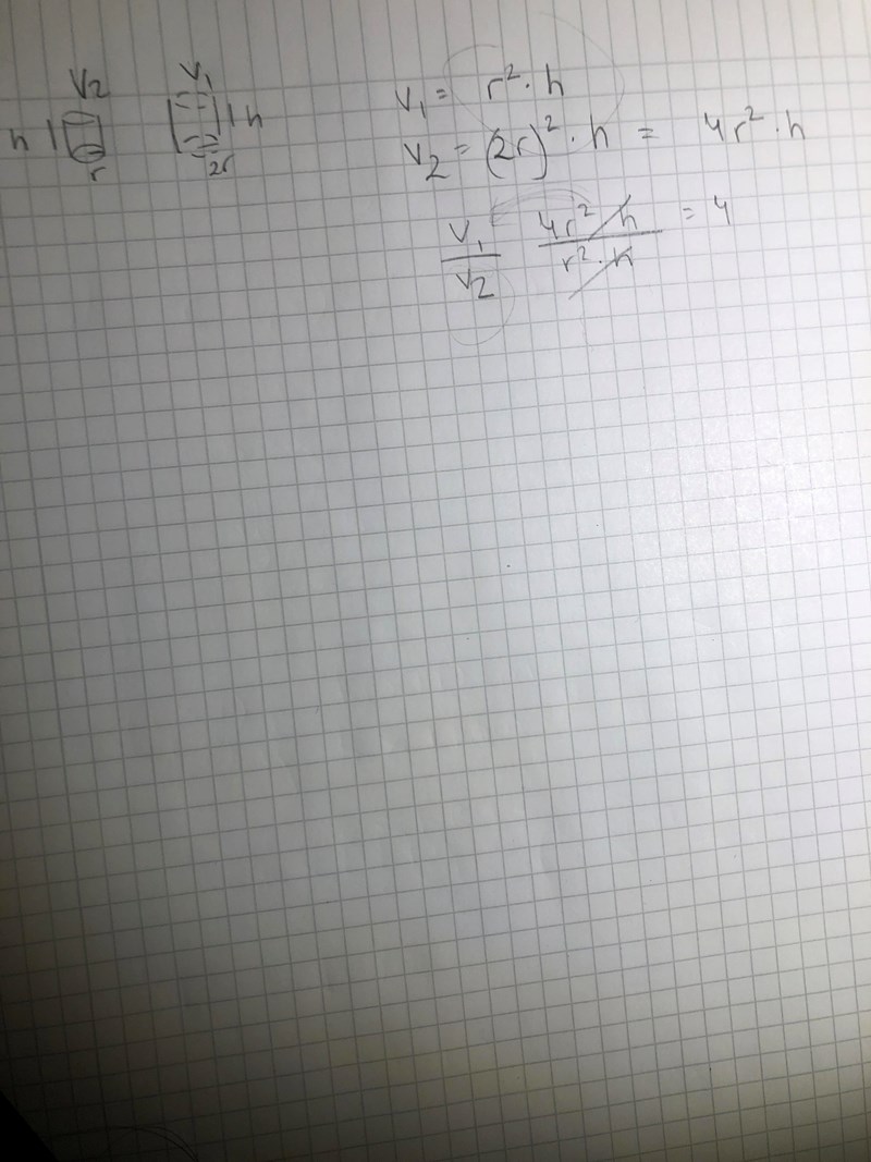Ja, om de är lika höga så är vas 1 fyra gånger större än vas 2. Om de är fyllda till samma nivå är vas 1 fyra gånger mer vattenrik än vas 2. Om man häller lika mängd vätska i vardera vas så blir alltså vattennivån fyra gånger högre i vas 2 än vas 1.