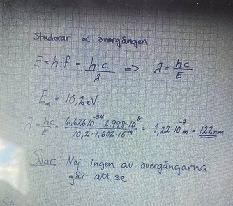 Jag har fastnat på uppgift b, förstår inte riktigt varför man inte använder uttrycket i mitten för att ta reda på energin, förstår lösningen längst ner, men förstår inte riktigt varför man inte använder sig av uttrycket i mitten, beskriver inte uttrycket den energi som frigörs?