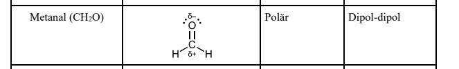 Hej, jag har en fråga.Borde inte metanal binda med vätebindning, eftersom den har en sida av väte och en sida av syre. Jag har för mig att jag har läst innan hur hela moleyklen bara behöver innehålla massa väte och massa syre exempelvis, så varför säger facit att denna binder med dipol-dipol?