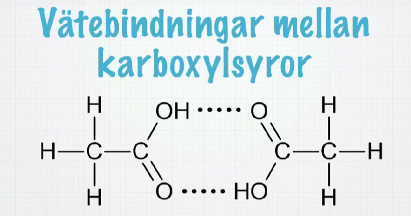 Vätebindningar mellan etansyramolekyler