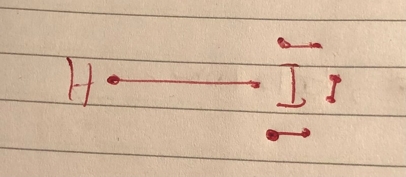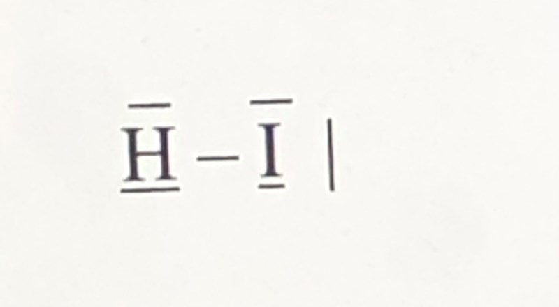 Ett H har en elektorn och I har 7 stycken, sen drog jag en bindning mellan H och I.