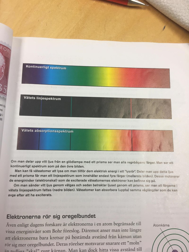 Att olika atomer kan avge olika färger beror på hur långt de hoppar mellan skalen (exciterar)