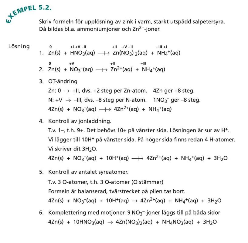 De har skrivit 10 salpetersyra på vänstersidan. Nio av nitratjonerna går åt för att bilda två formelenheter zinknitrat, och en blir til ammoniumnitrat. Bort med dem! Behåll bara den nitratjon som reagerar, och de tio vätejoner (egentligen oxoniumjoner, men det blir tydligare utan vattnet) som faktiskt reagerar.