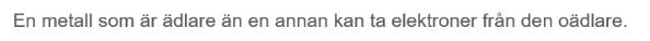 Smaragdalena skrev:Nej, det betyder att den ädla metallen har en stark tendens att reduceras, så ädelmeralljonerna är oxidationsmedel som får oädla metaller att oxideras.