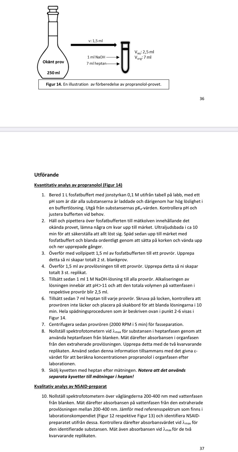 Substansen jag har är Ketoprofen, jag har räknat ut extraktionsgraden, samt koncentrationen i stamlösningen som är 1,58*10^-4 . Det räknade jag ut genom att jag visste massa som är 20,0 mg och volymen 500 ml samt molmassan som är 254,3 g/mol. Resterande beräkningar vet jag inte riktigt hur jag ska utföra, vi har också fått absorbansen angivet.