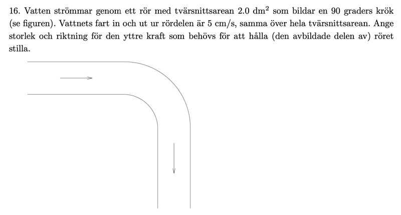 Vatten strömmar genom ett rör med tvärsnittsaarean 2.0dm^2