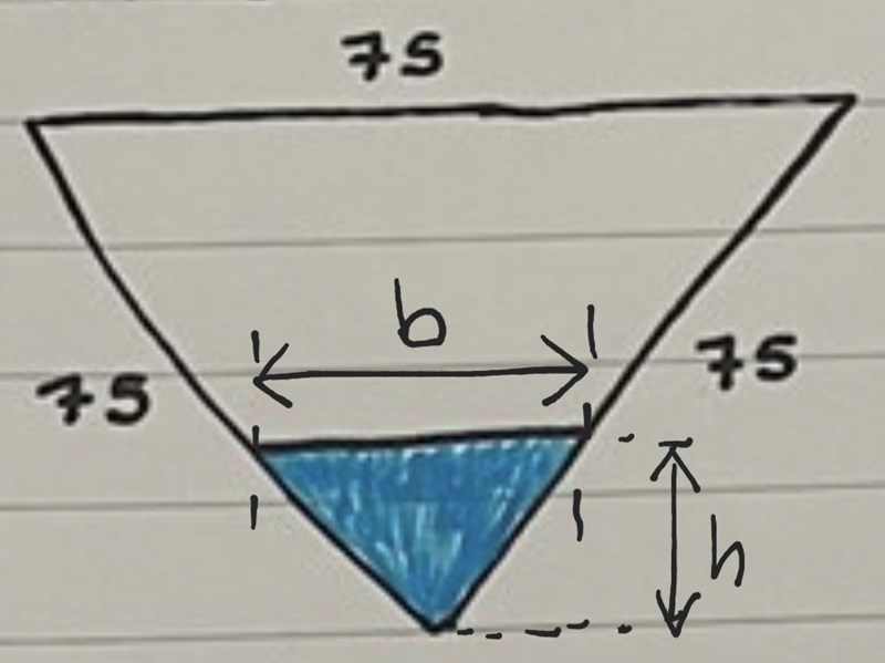 För att räkna ut V, gör jag då höjden*basen/2= 75*75/2= 2812,5?