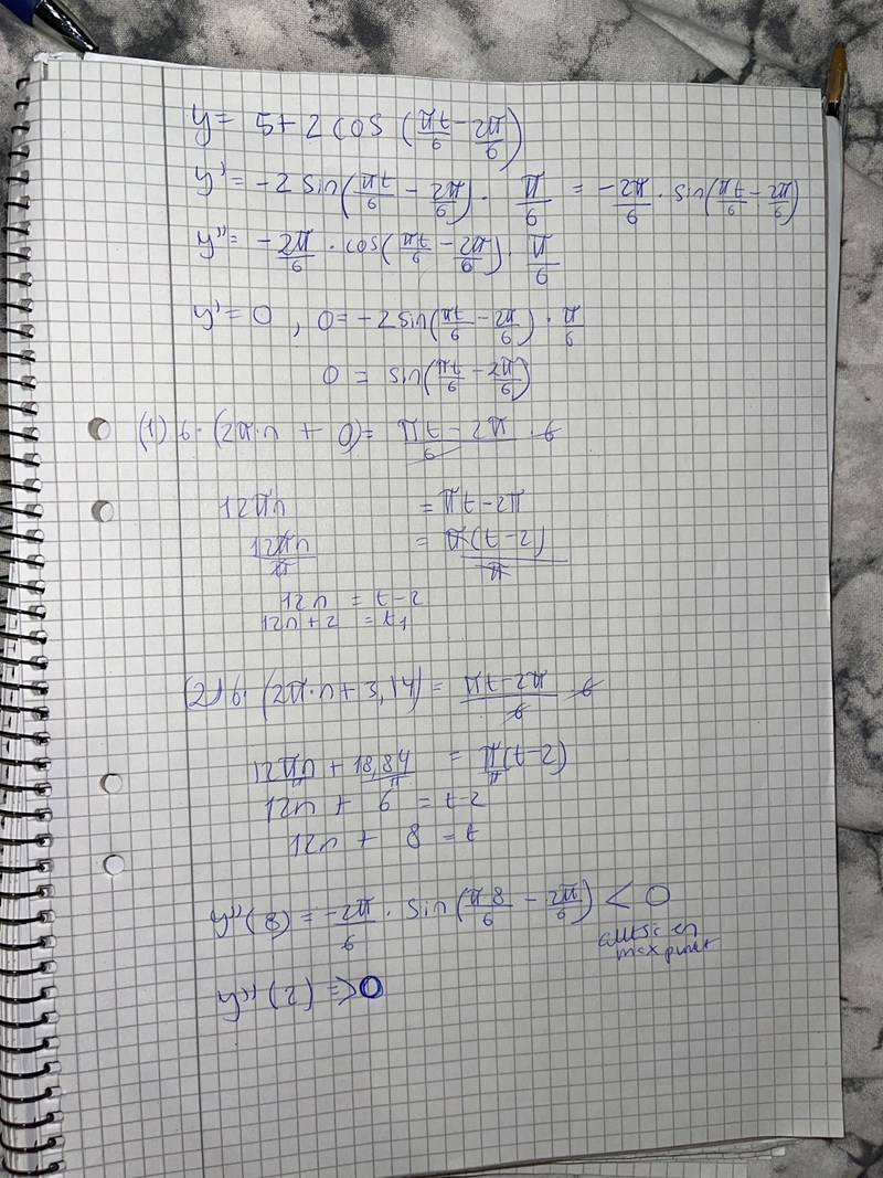 b) Ja. Extrempunkterna för en funktion får man genom att derivera och sätta lika med 0. Nu är funktionen vi vill undersöka y'(t) och dess derivata y''(t) så det blir andraderivatan av y(t).