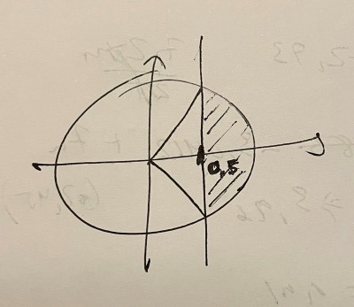 Här ser vi att de gränserna för de vinklar som ger cos(v)>=0,5 i hela området är v >= -1,047 och v <= 1,047.