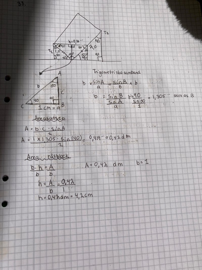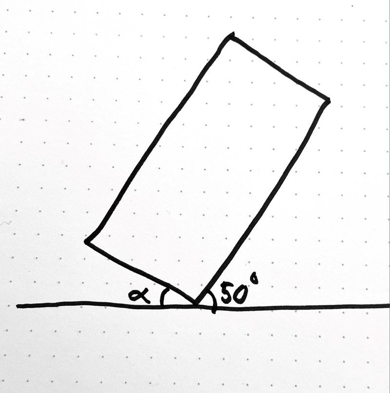 Behöver den verkligen vara det? Blir det inte 40 i och med att hörnet i rätblocket är 90?