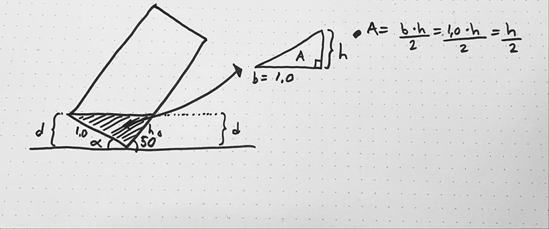 Lägg märke till att höjden "d" alltså är likadan för de två trianglarna som bildas under behållaren.