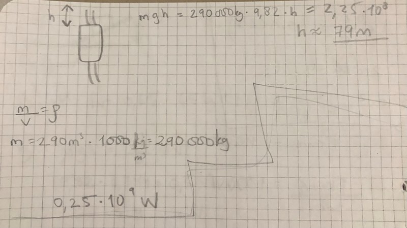 alltså är den nyttiga energin 0.9*0.25*10^9 J = 2.25*10^8 Vilket ger oss ekvationen ->