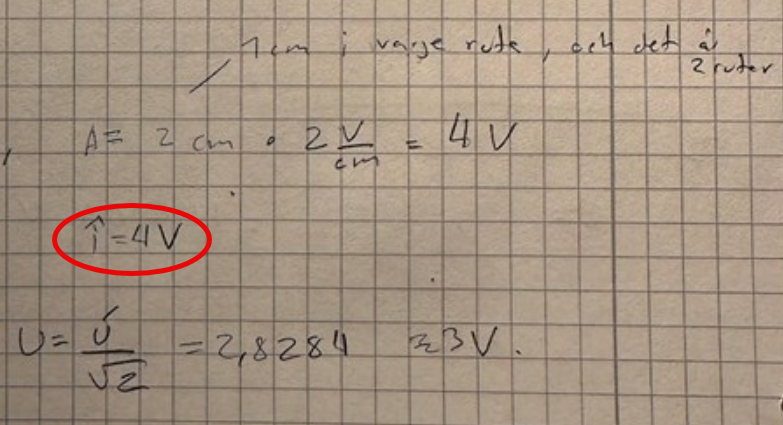 Ska man vara lite petig (och det ska man vara när man läser av oscilloskop), så tycker jag toppen når lite högre än två rutor.