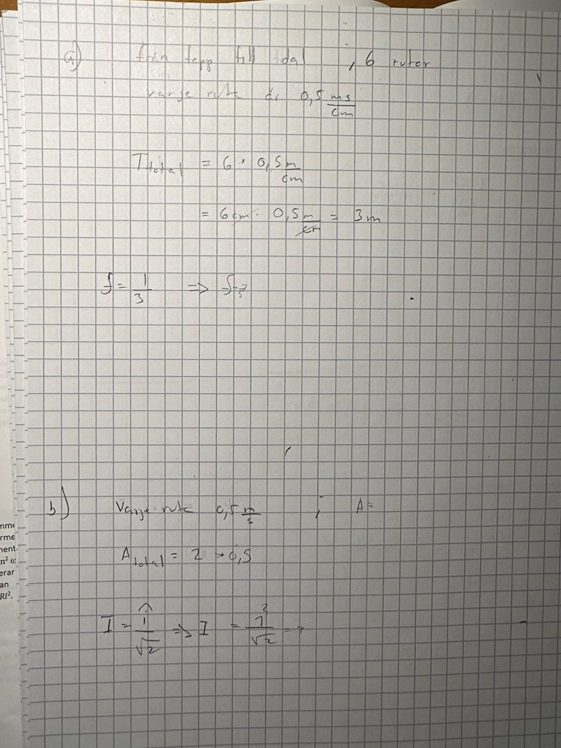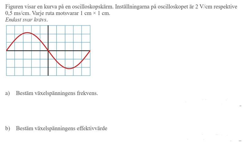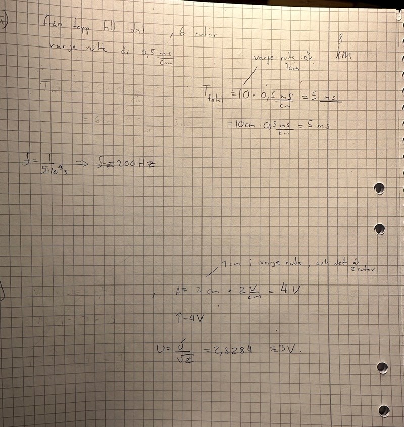 en period är 10 rutor alltså 10*0,5 = 5 ms