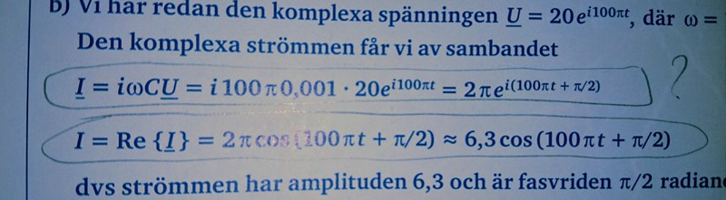 Om du förenklar faktorn ser du att det blir . Det ger fasförskjutningen - du "vrider upp" talet 90 grader när du multiplicerar med i.\pi