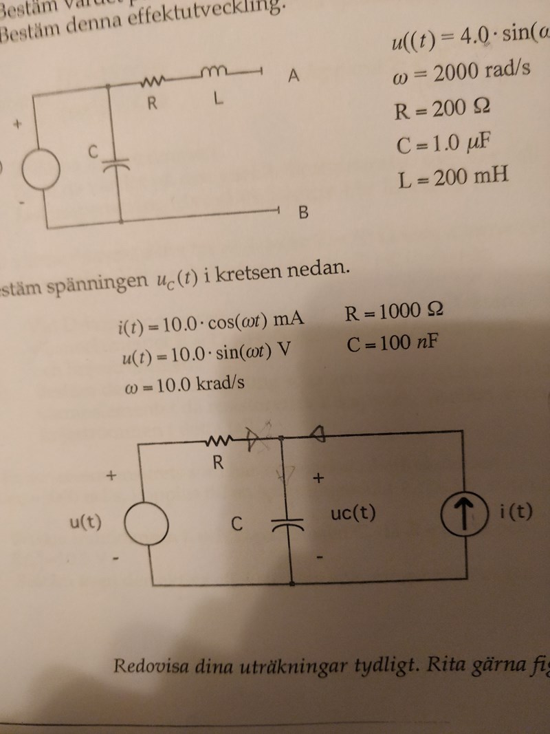 Skall beräkna spänning över kondensatorn tänker att man kan lösa uppgiften med strömdelning, sedan addera bidragen. Tänker jag rätt?