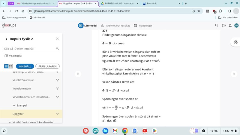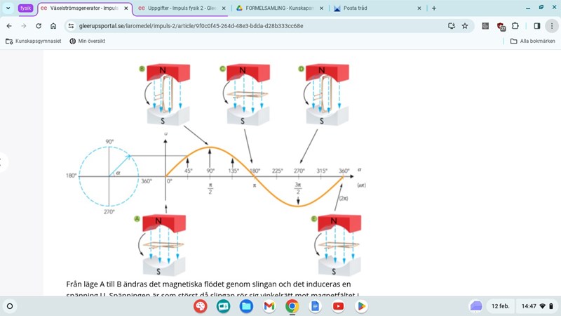Hej, detta är då man roterar en slinga i magnetfält. Här förklarar de hur det är gällande spänningen, men om de hade frågat om strömmen, hade jag då ritat och förklarat på samma sätt bara att jag anger formeln för strömmen istället?