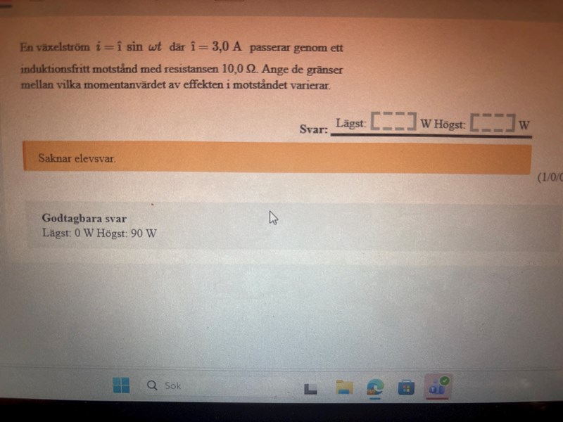Hej! Hur räknar du ut det minsta momentanvärdet av effekten?
