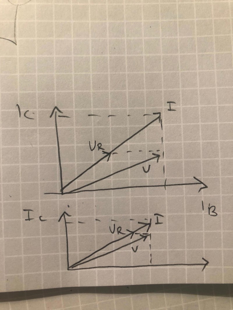 Jag förstår att vi får ut storlekarna på Ib och Ic via beräkningarna, och sedan att I är summan av dem. Jag förstår dock inte hur vi tänker när vi ritar ut Ur och U? Varför får U en ''egen'' visare?