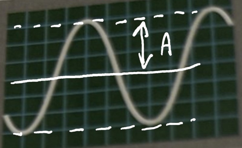 Testa att sätt in A=1,5. När sin()=1 (max) är Asin()=A. När sin()=-1 (min) är Asin()=-A.