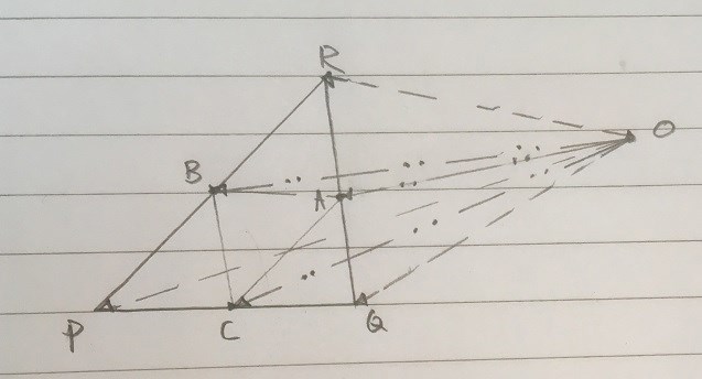 OA + OB + OC = (OP + PA) + (OQ + QB) + (OR + RC) = (OP + OQ + OR) + (PA + RC + QB)