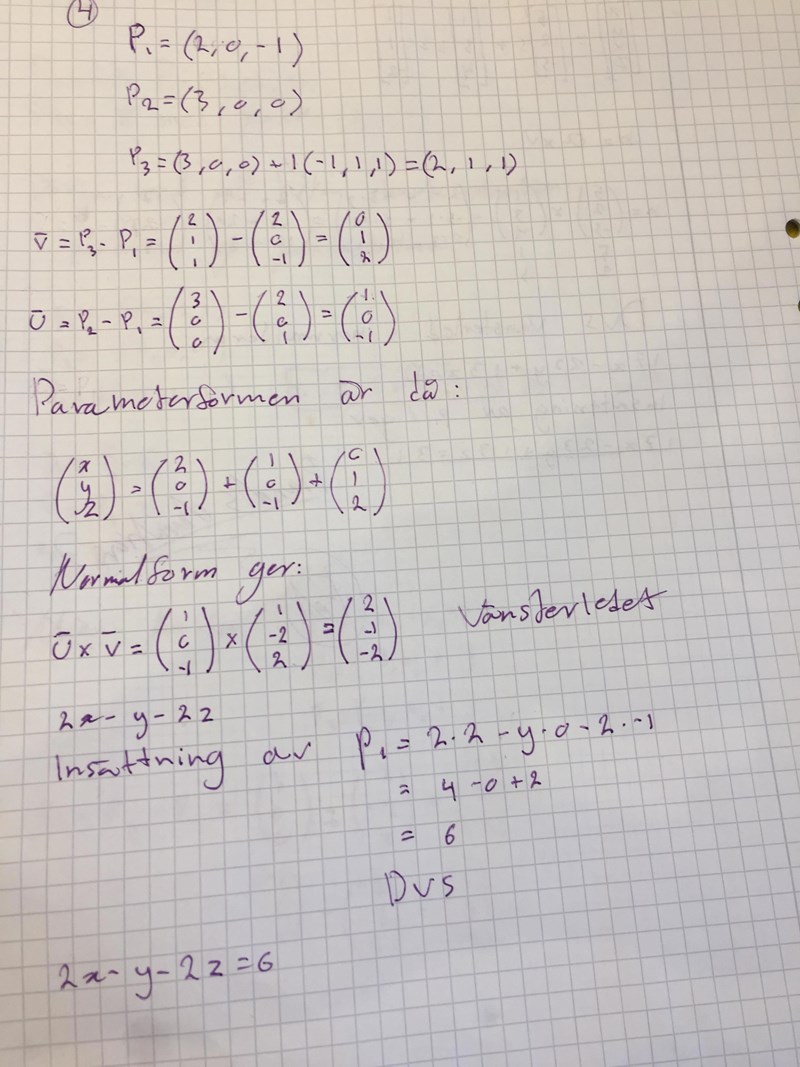 Alltså planets ekvation blir . Så långt rätt den här gången hahah?