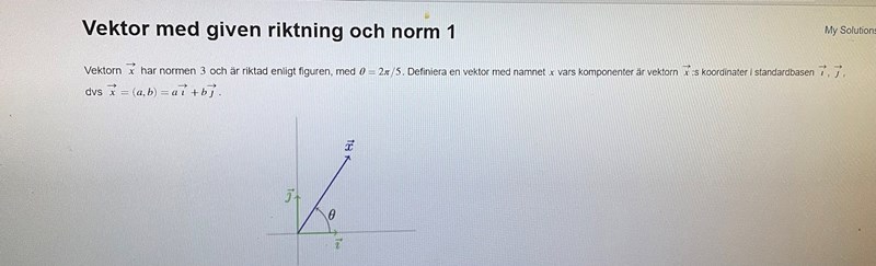 Jag förstår inte riktigt skulle du kunna förklara det mer, är det inte det som är angivet i frågan. Normen är 3 och vinkeln 2pi/5😅