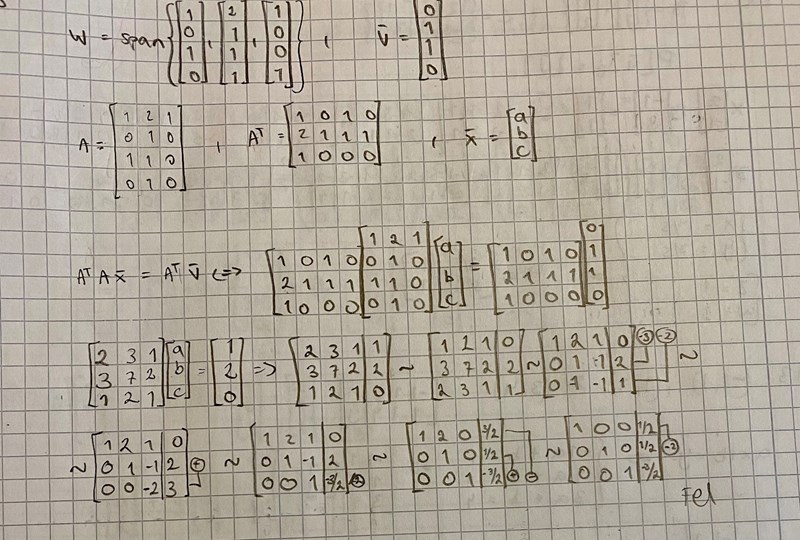 Jahaaaaa! Då fattar jag. Så man kan alltså säga att det som beräknades är koordinater till den linjärkombination av vektorer som befinner sig i W! Koordinaterna tillsammans med vektorerna ger alltså !