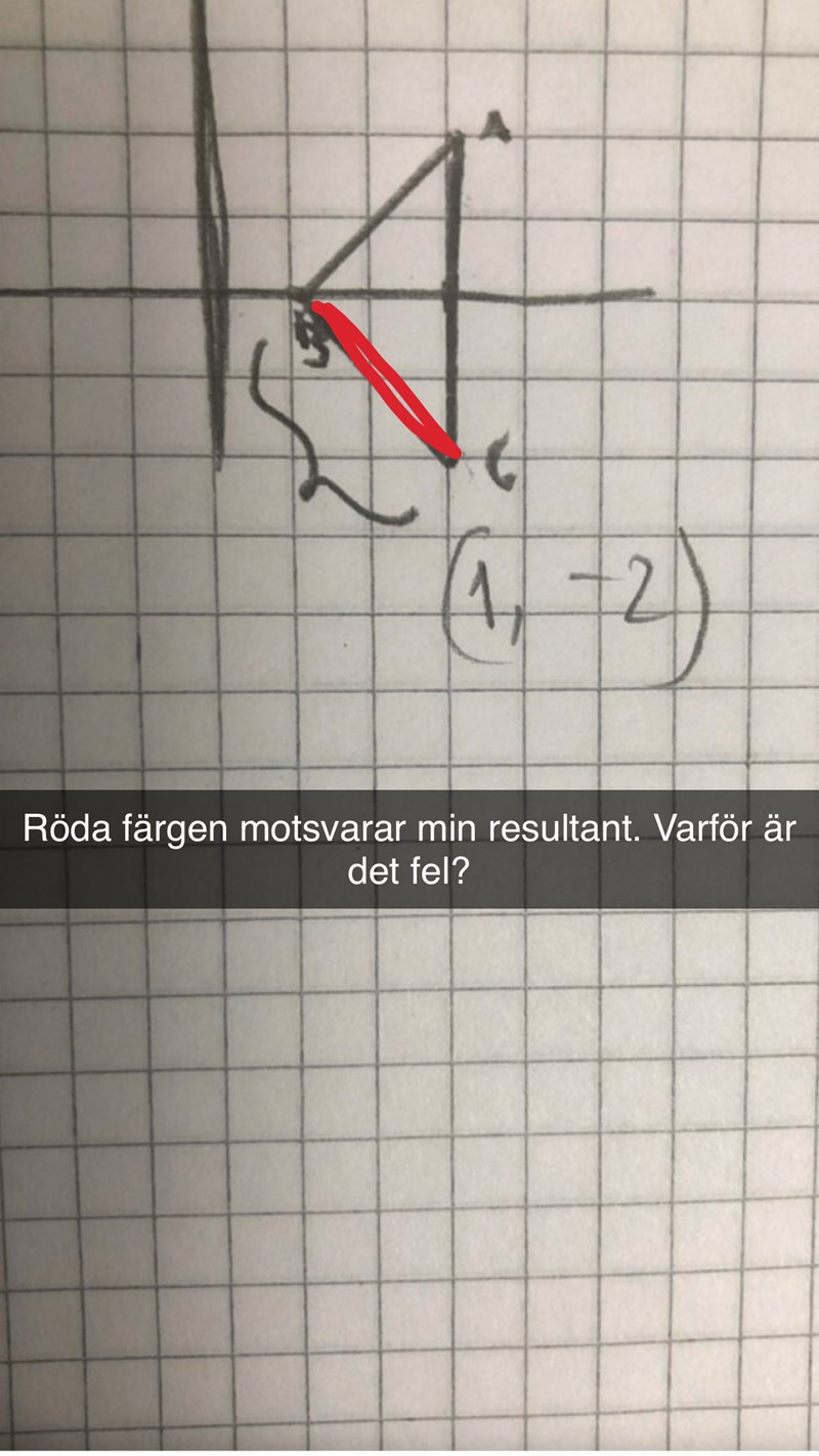 Du har satt ut punkterna rätt och har ritat ut vektorerna AB och AC rätt (men inte markerat vad som är vad), men du har inte ritat ut resultanten.