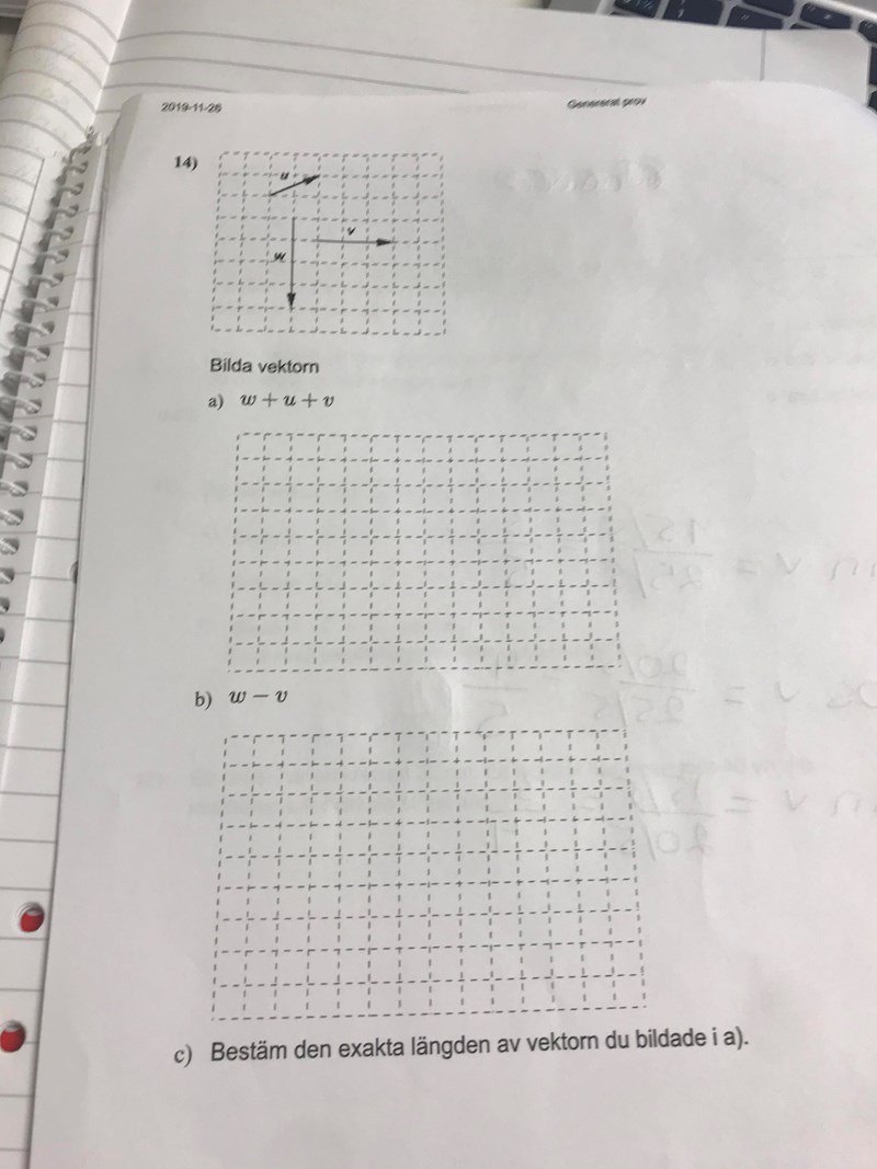 För den här uppgiften kan du tänka på vektorer som sådana där pilar som finns i första bilden. Man får flytta på dem, men man får inte ändra riktning eller längd på den.