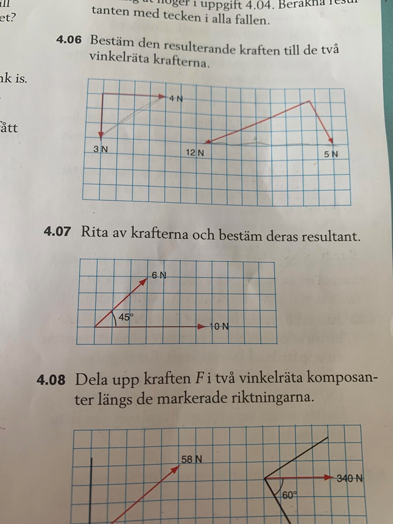 Hej! Förstår inte vad jag gör för fel på uppgift 3.08... Har för mig att man kan göra på detta sätt, men tydligen inte. Mitt svar är 14 N men det rätta svaret är 15 N...