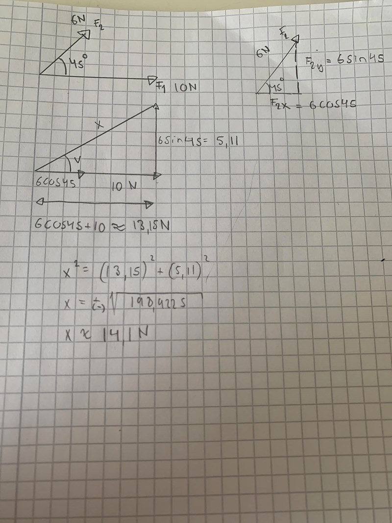 Vinkeln 45 grader har samma sinus- som cosinusvärde, så 6cos(45) ska bli samma som 6sin(45). Du verkar dock få olika, så se över den biten igen!