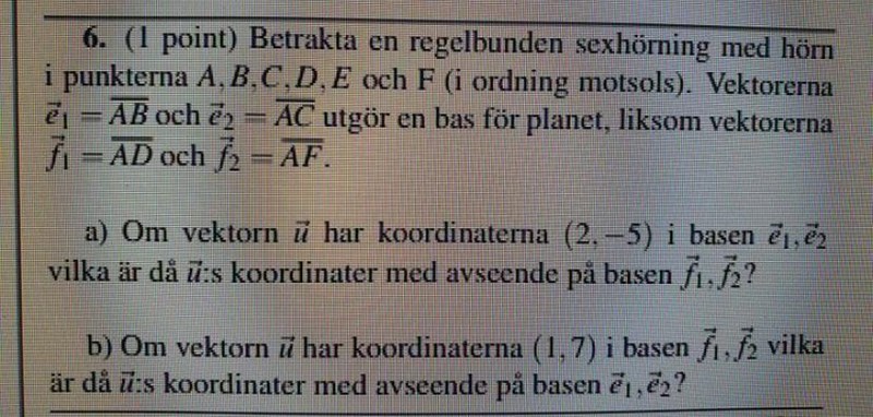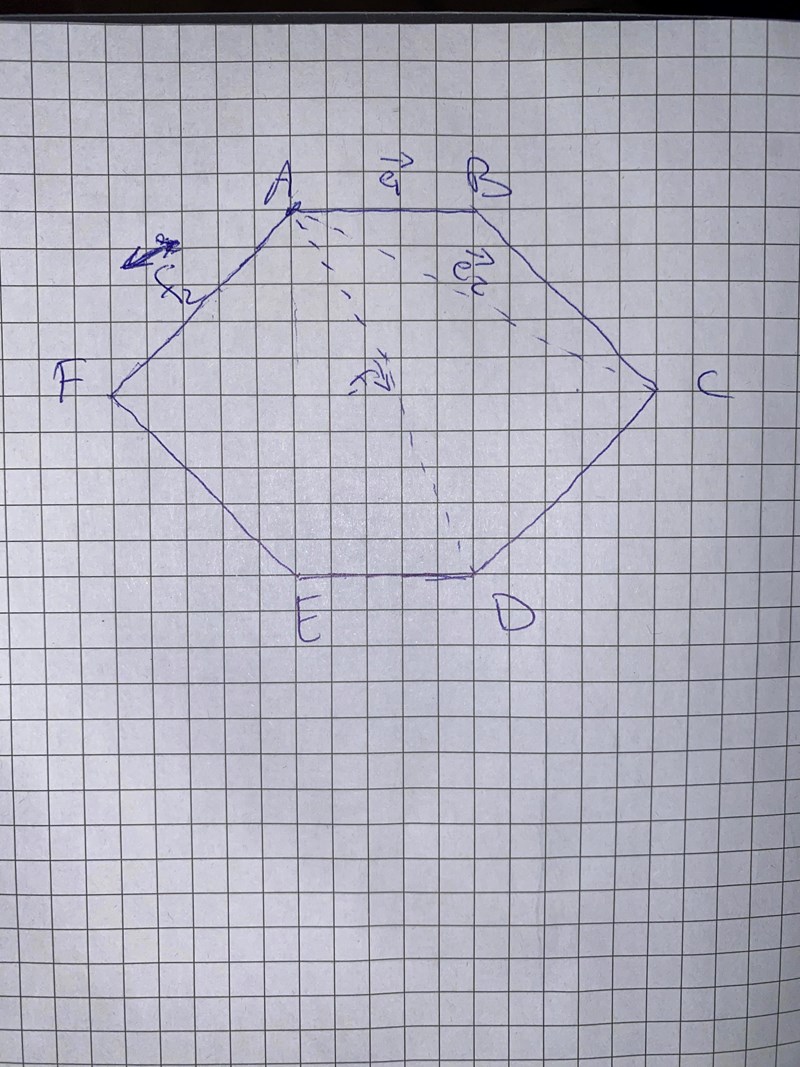 Börja med att rita upp sexhörningen och de olika vektorerna, så att du kan se vad det är du håller på med. Lägg upp bilden här.