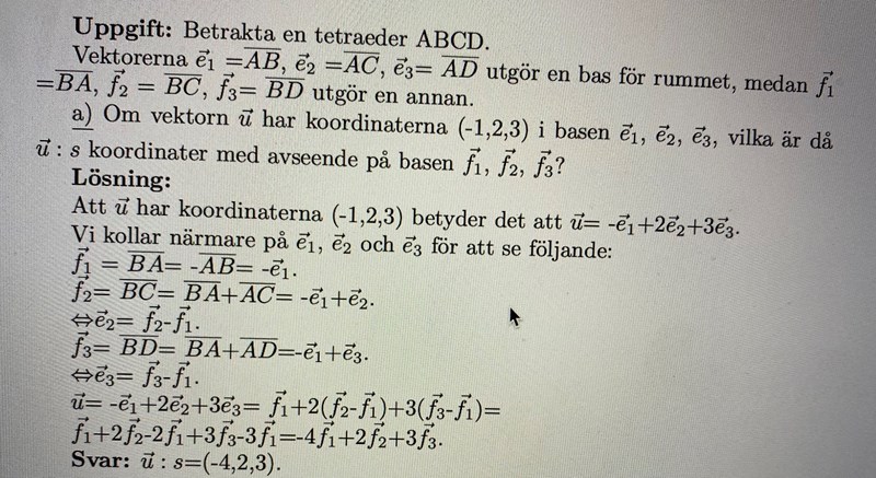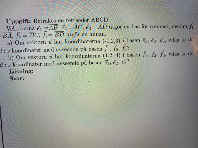 Försök att hitta sambanden mellan vektorerna i de olika baserna.
