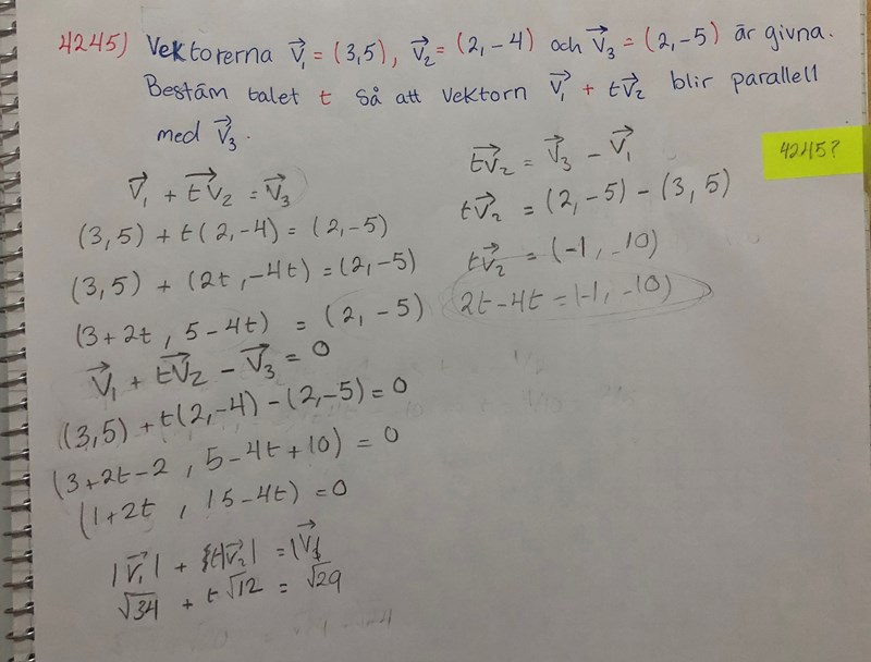 Problemet är att i uppgiften det står "blir parallell", men din ekvation säger "blir lika med", och det är inte samma sak.