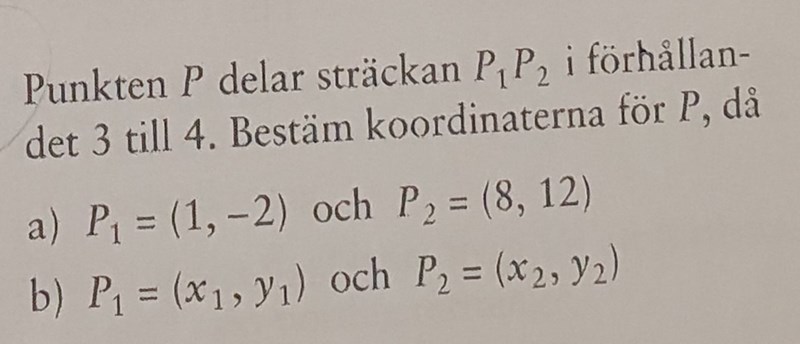 Börja med att markera punkterna P1 och P2 i ett koordinatsystem och rita sträckan mellan dem för förståelse.