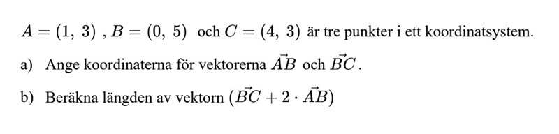 Det är b-delen som jag behöver hjälp med. Jag fick √72 l.e. som svar, men i Facit står det att svaret är √8 l.e. begriper inte riktigt hur jag kan ha fått fel?