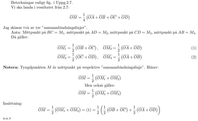 Är helt och hållet fast på en uppgift, nämligen: I en tetraeder sammanbinder man mittpunkterna på motstående kantlinjer. Visa att dessa skär varandra i tyngdpunkten.