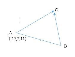 I triangeln ABC är hörnpunkten A i punkten (-17,2,11). De sidovektorer som slutar i punkten c är och . Bestäm mittpunkten av sidan AB.