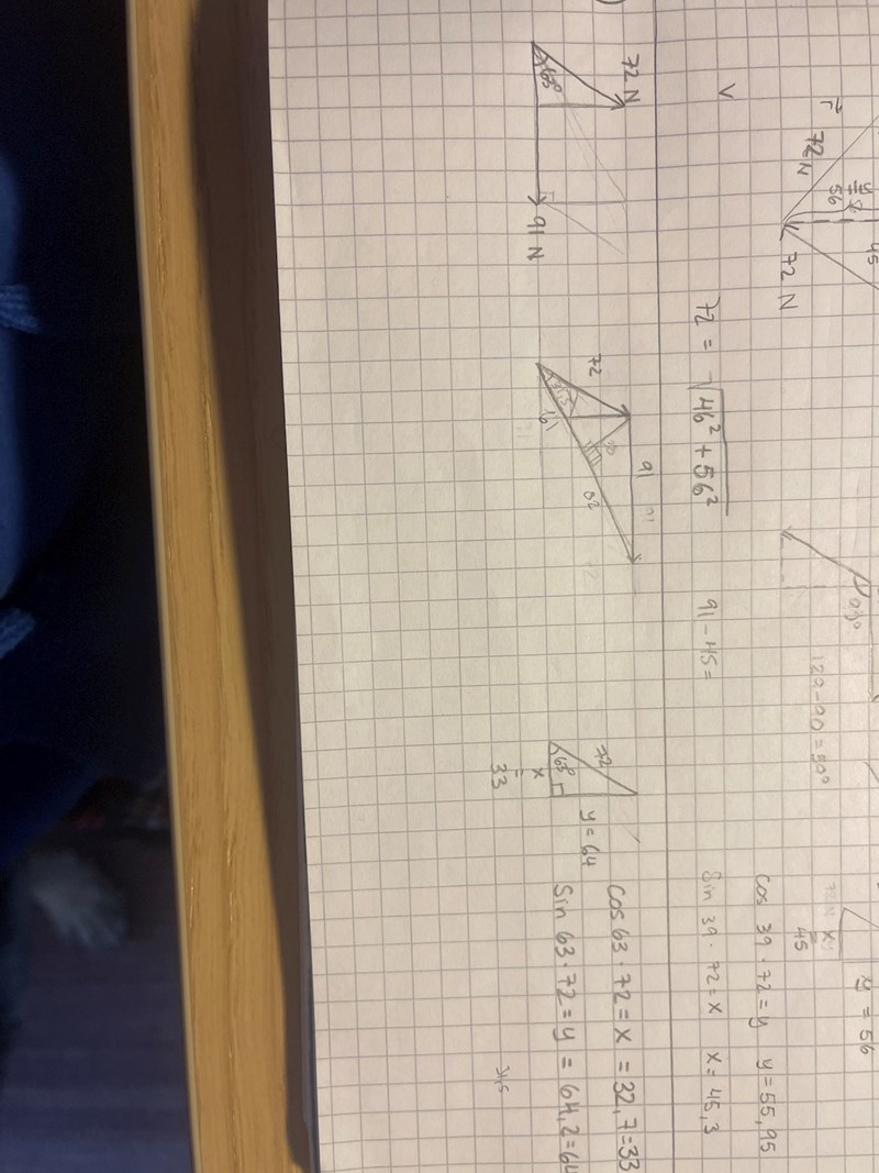 den resulterande vektorn = (91 - (sin(39) * 72), cos(39) * 72)