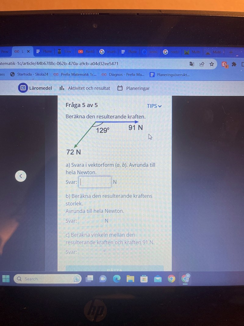 hur har du försökt? (Börja med att flytta den gröna kraften så den börjar vid spetsen av den blå.)