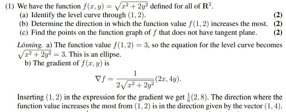 Motsvarigheten, eller det jag blir förvirrad av, är i den andra uppgiften "Vector". Här frågar de om direktionen där funtionen i punkten ökar som mest och då ska svaret bli en vektor.