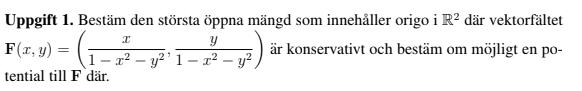 Jag har kommit fram till att detta vektorfält är konservativt och den har en potential ϕ(x,y) = -ln(1-x2-y2)2+K, KR