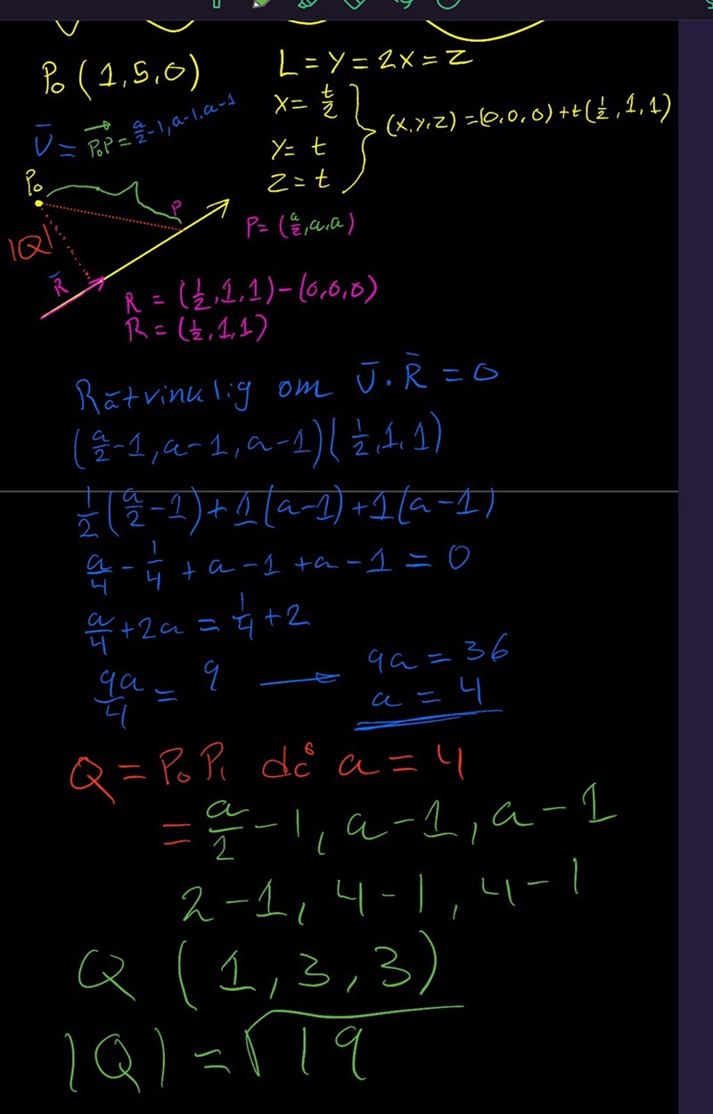 Du har ju räknat med P0 = (1, 1, 1). Men skulle det inte vara (1, 5, 0)?