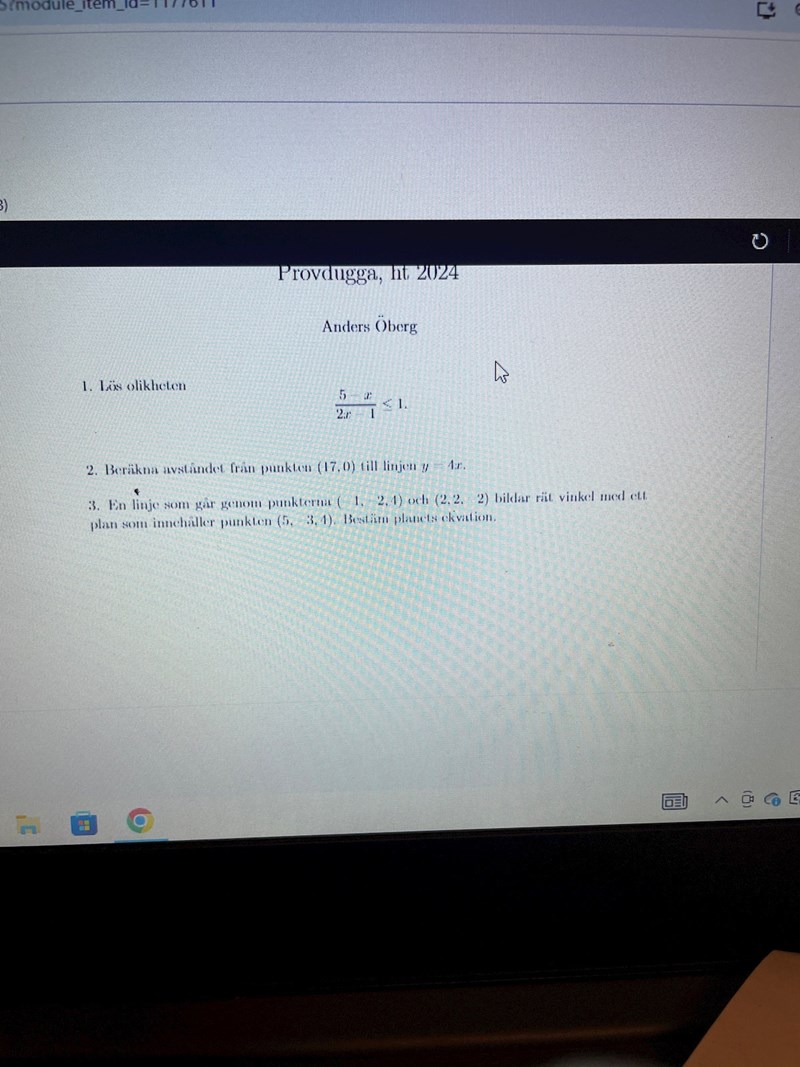jag behöver hjälp med fråga 3. Jag fick fram svaret 3x+4y-6z=-12. Är det rätt svar? (Vi fick inget facit)